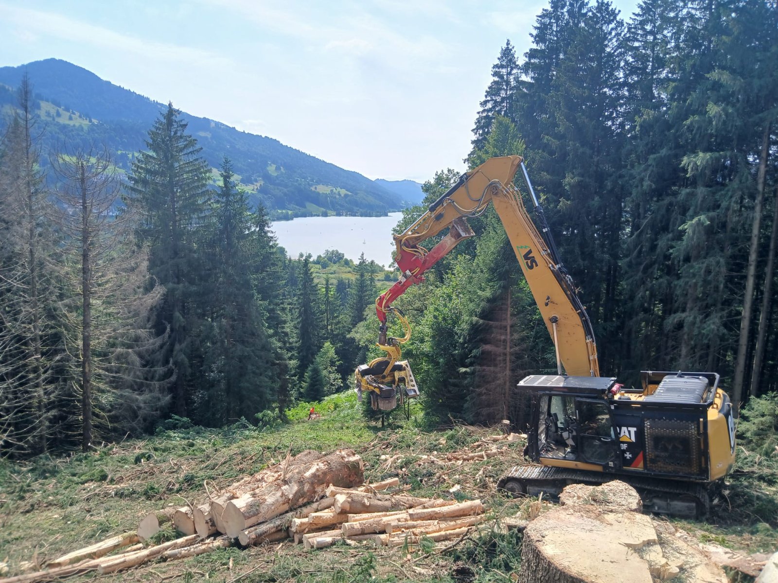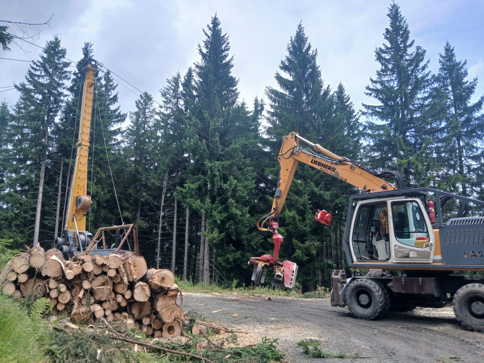 Wir bieten Holzernte, Rückung und den Holzverkauf aus einer Hand. Somit werden Sie bei der Durchführung ihrer Hiebsmaßnahme von der waldgerechten Planung bis zum Verkauf des eingeschlagenen Holzes professionell und kundenorientiert von uns betreut.